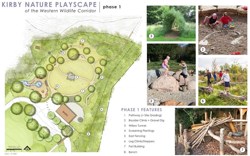 This Kirby Nature Playscape project began in 2019 with a vision to provide a fun, educational, and immersive nature experience for young children around the prairie. Our hope is that the Playscape will create a deep love and care for nature (and hopefully inspire a few future conservationists). Over the past few months, tremendous progress has been made in creating the Playscape and we are close to realizing our vision!